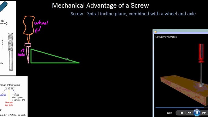 Web When the screw is turned completely around one time the screw penetrates by one thread width. Web The mechanical advantage of an inclined plane is calculated as the ratio of the length of the incline and the height of the incline. I M A D.